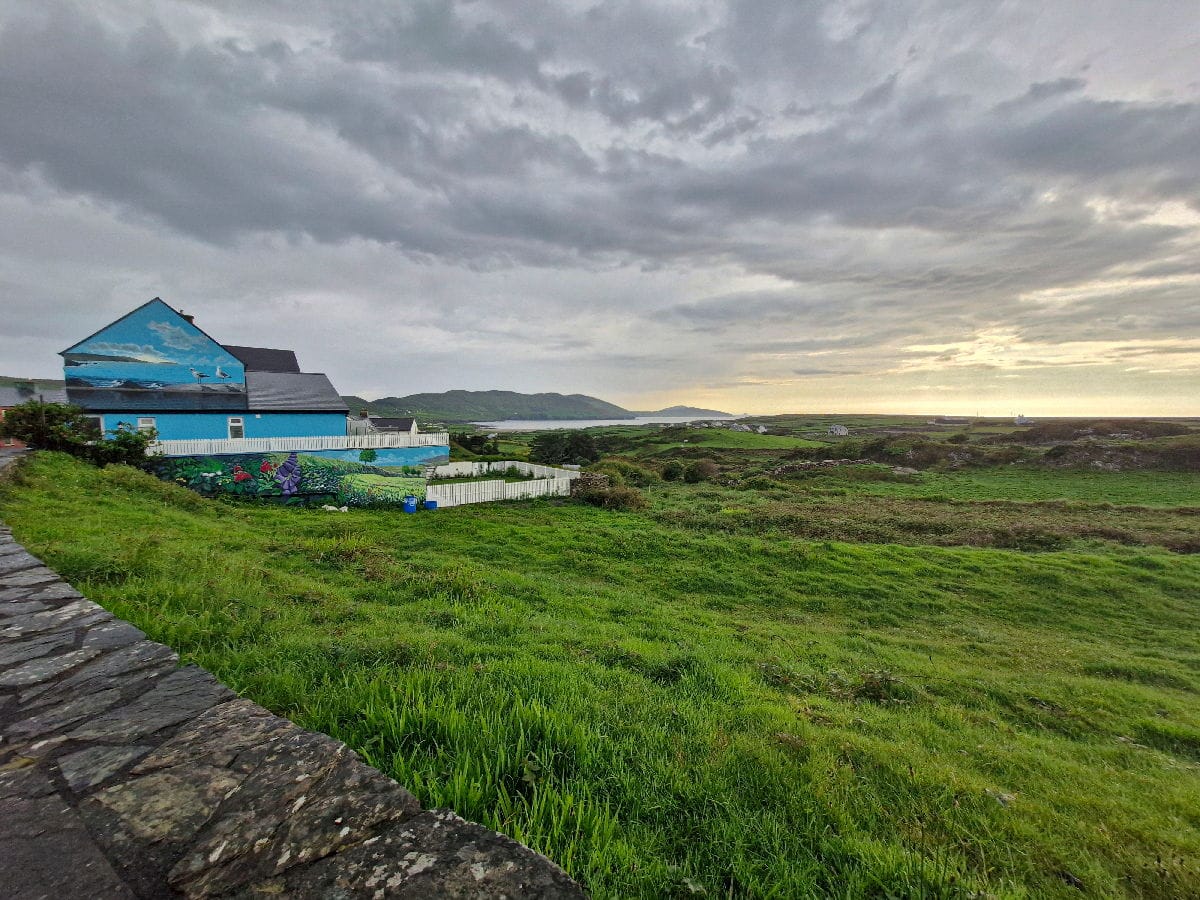 Les jambes étant bonnes, j’aimerais continuer encore une vingtaine de kilomètres mais la pluie revient. Comme je n’ai pas envie de planter la tente, je me mets en quête d’un Bed and Breakfast. J’en vois un indiqué à une centaine de mètres de la route. Je m’y rends, sonne mais personne ne répond. Je poursuis ma route et 1,5 km plus loin je trouve mon bonheur dans le village d’Allihies. Le B&B est en plein village, près du pub où je vais pouvoir aller me restaurer.