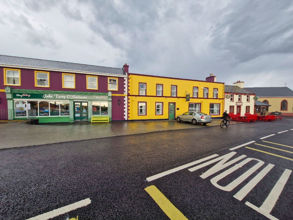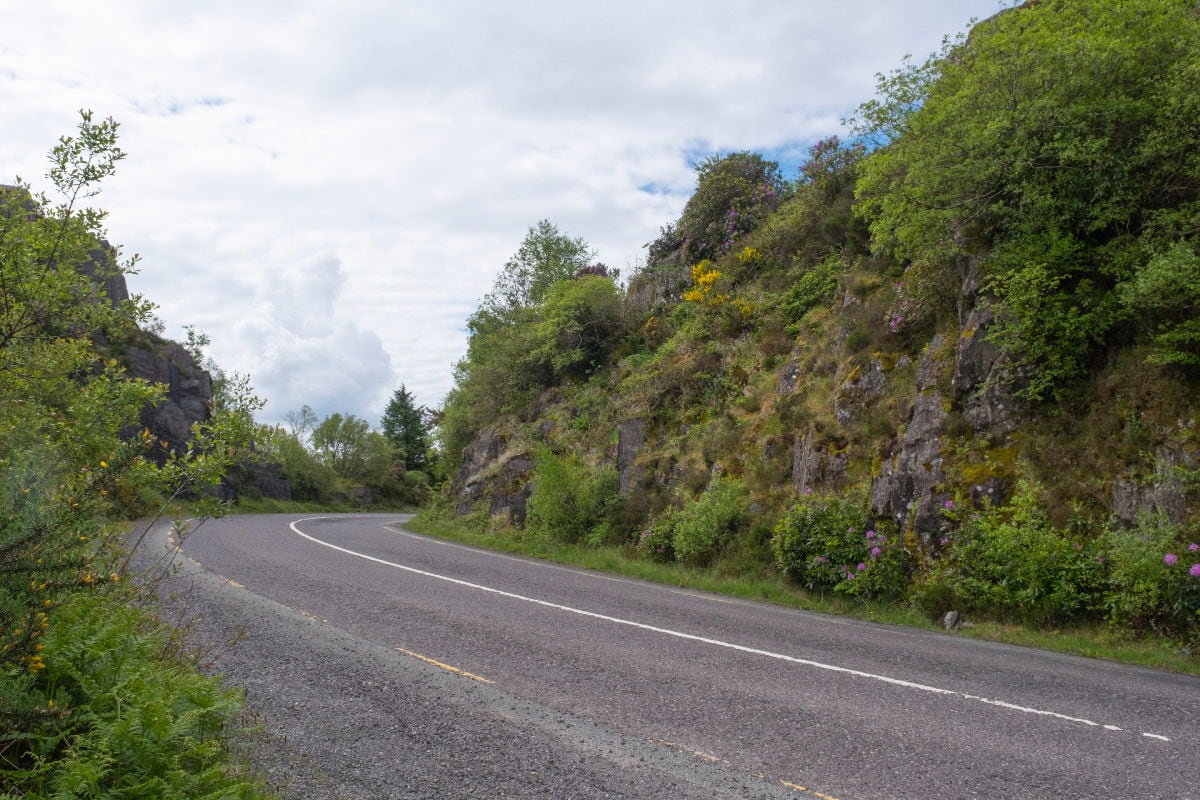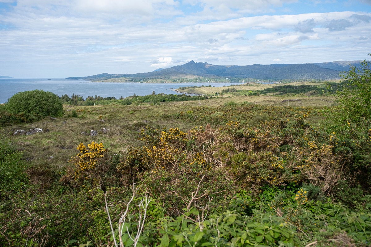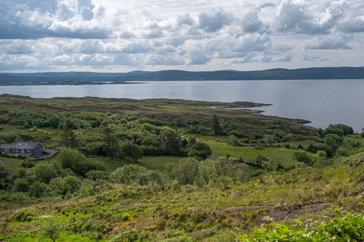 À partir d’Adricole, au trente-cinquième kilomètre, le paysage s’ouvre. À Adricole, j’hésite à bifurquer à droite pour regrimper le Heally Pass, l’un des plus beaux cols que j’ai pu gravir. Situé à 285 m d’altitude, on se croirait, avec sa végétation, dans un col alpin à plus de 2000 m. Depuis ce col, on a une vue sur la mer des deux côtés. Je renonce, les nuages s’amoncelant, car il est probable que je ne finisse pas mon étape au sec. Je poursuis ma route en direction de Casteltownbere, où je prévois de me ravitailler et de me restaurer.